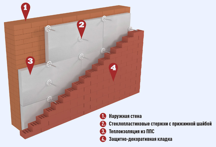 Разработан шаблон спецификации в соответствии с ГОСТ Р 21.1101-2013. Стена многослойная с облицовкой из кирпича толщиной 120 мм и теплоизоляцией из пенополистирольных плит ППС13-Р. Внутренний слой стены толщиной 250 мм выполнен из кирпича. Применяется в малоэтажном строительстве.