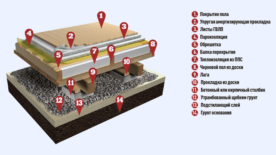 Разработан шаблон спецификации в соответствии с ГОСТ Р 21.1101-2013. Пол на лагах по грунту над холодными подпольями с черновым полом, теплоизоляцией из пенополистирольных плит ППС35-Т, пароизоляцией и обрешеткой из досок и стяжкой из гипсоволокнистых листов. Применяется в малоэтажном строительстве.
